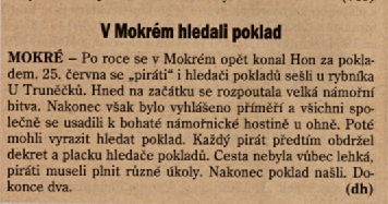 Dnešní Orlický týdeník přináší krátkou zprávu o tom, jak v Mokrém piráti hledali poklad.
