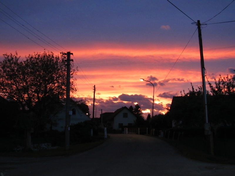 Večer kolem půl deváté jsme mohli v Mokrém vidět úchvatný rudý západ slunce, provázený silným větrem, který by měl přinést do třech dnů déšť.