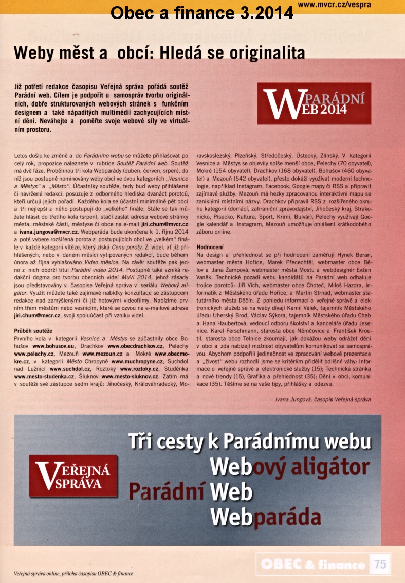 Druhý článek přináší soutěž Správný web, do které se přihlásila i obec Mokré.