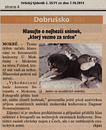 Dnešní Orlický týdeník č. 55/71 píše o fotografické soutěži v Mokrém.