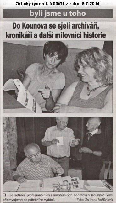 Dnešní Orlický týdeník přináší první část akce sdružení AKRON - setkání kronikářů našeho kraje, kterého se pravidelně účastní i kronikářka Mokrého.