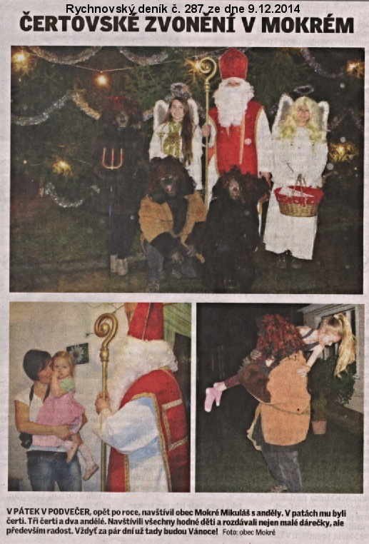 Dne 9.12.2014 vyšel v Rychnovském deníku článek o čertovském zvonění v Mokrém.